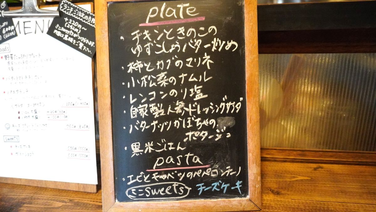 野菜たっぷりプレートとパスタの内容は隣のミニ黒板に書いてありました↓
