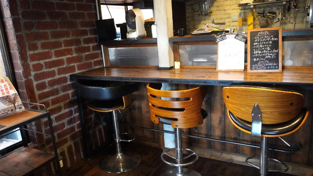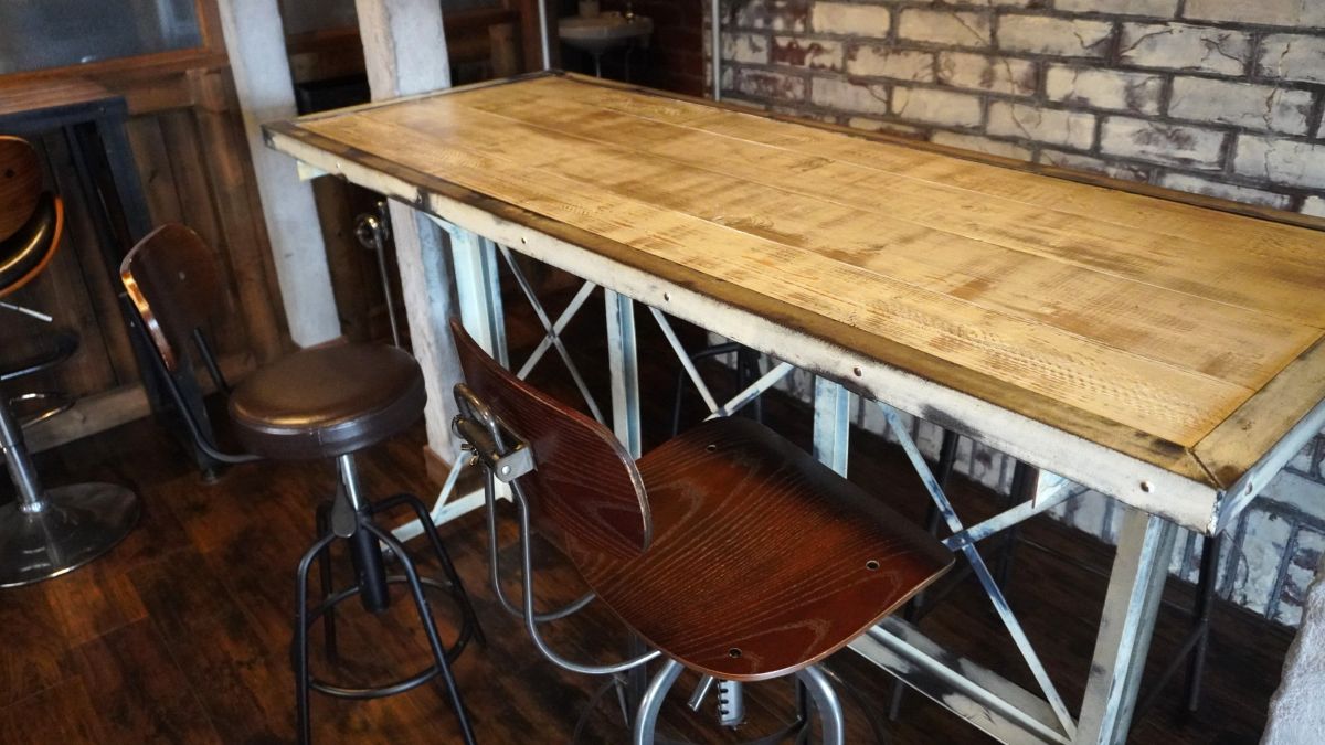 店内はレンガ調の壁×革のソファーでかっこいい空間が広がっています↓