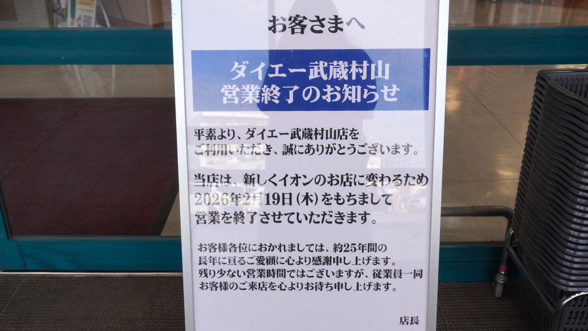 いーむら読者さんより「ダイエー 武蔵村山店が閉店するみたい」