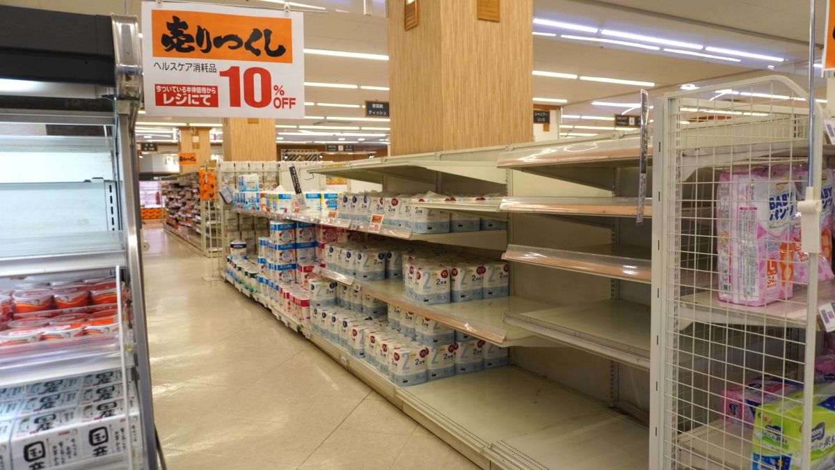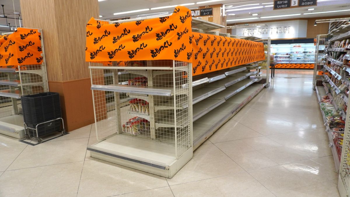 食料品・日用品売り場は閉店に向けて品数を絞っている様子↓