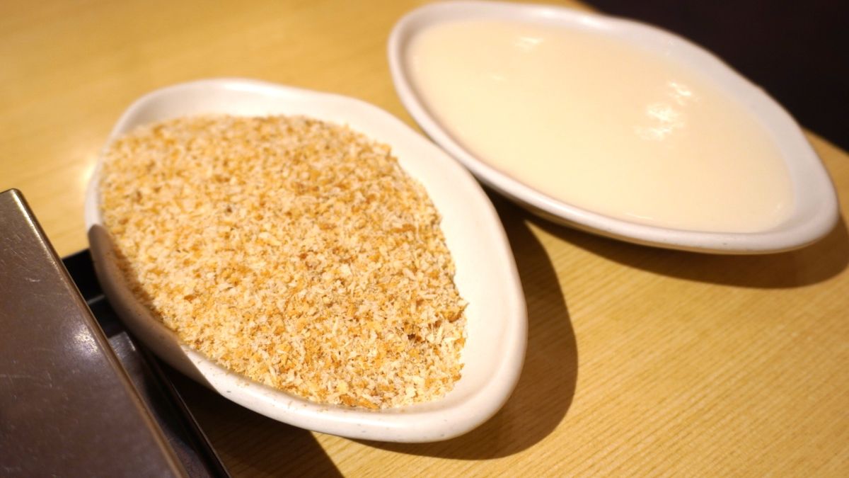 ハンバーグに衣が付くとメンチカツみたいになるのでソースが良く絡む!