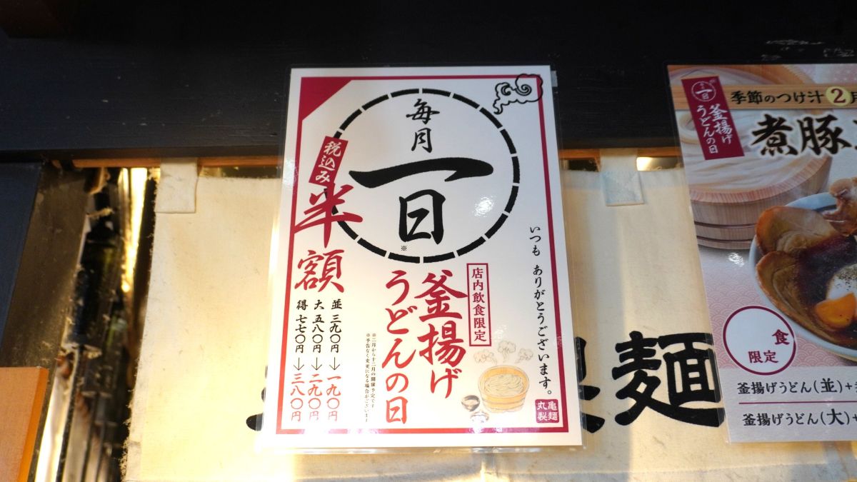 3. 毎月1日は「釜揚げうどん」が半額!?『丸亀製麺 イオンモールむさし村山店』でお得にうどんを食べてみた!