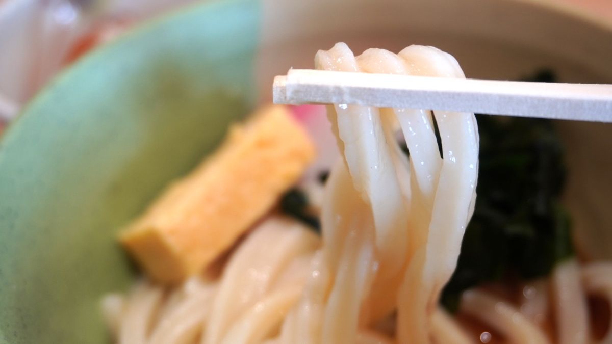 濃いめのお出汁が絡まった柔らかめツルツルな麺です。