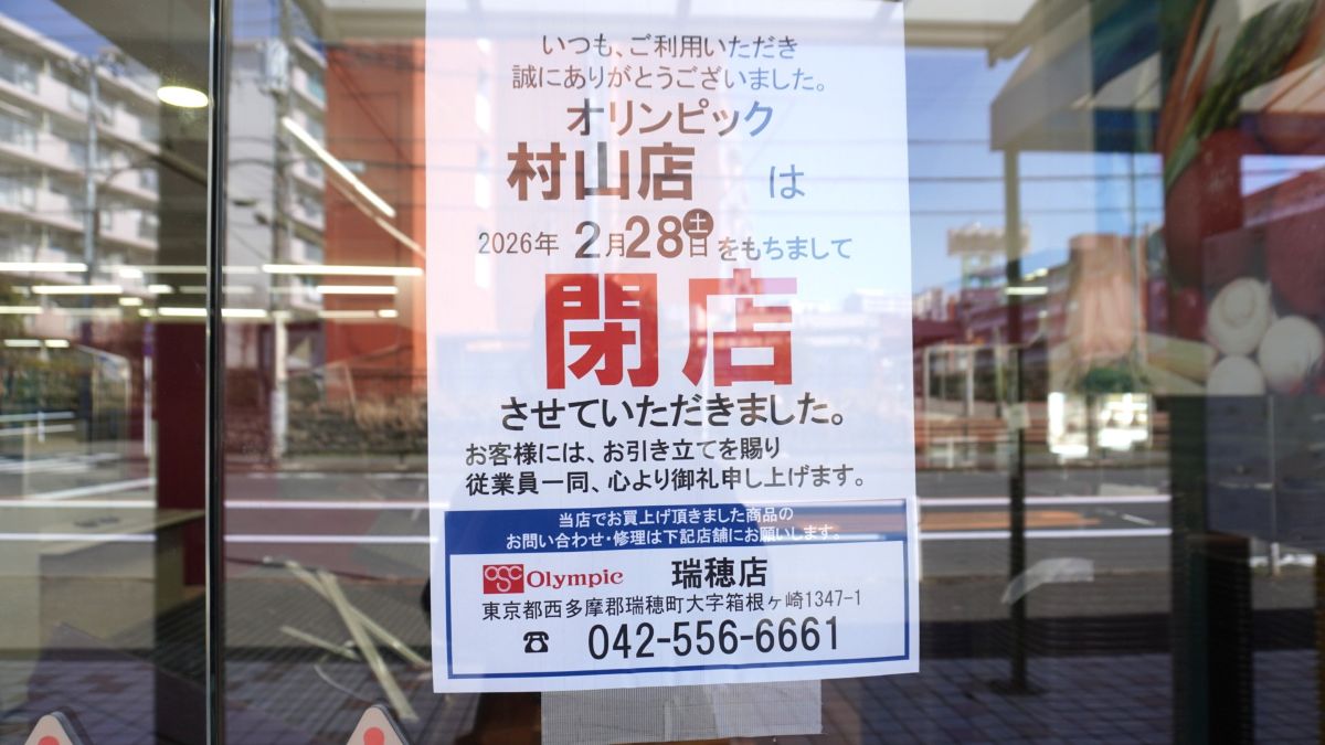 3. 《閉店》東大和市・上北台にある『Olympic(オリンピック) 村山店』が2月28日(土)で閉店。隣接する『龍生堂薬局 村山店』も3月31日(火)で閉店するみたい。