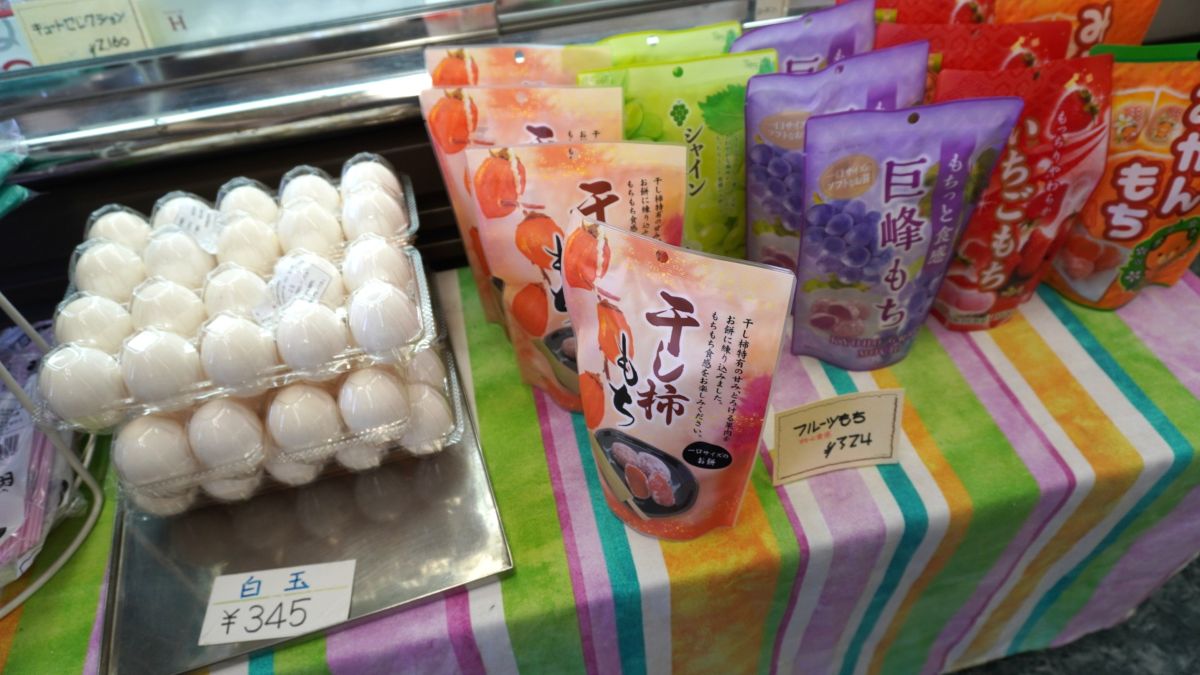 卵や「フルーツもち」も置いてありました。