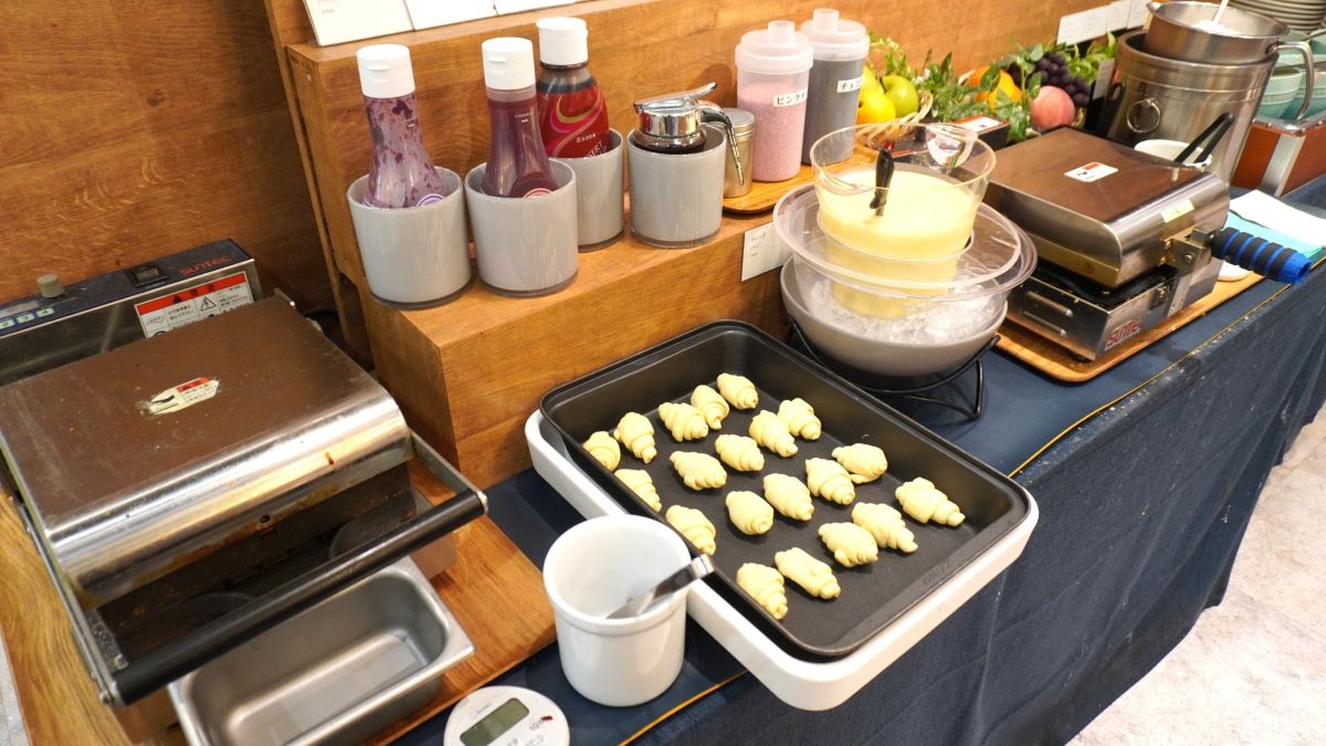 クロワッサン生地をワッフルメーカーでプレスする「クロッフル」と、自分で作るクレープの生地があります。