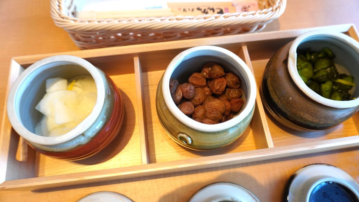 中身は左から「自家製ゆず大根」、「紀州小梅」、「青きゅうり」です。